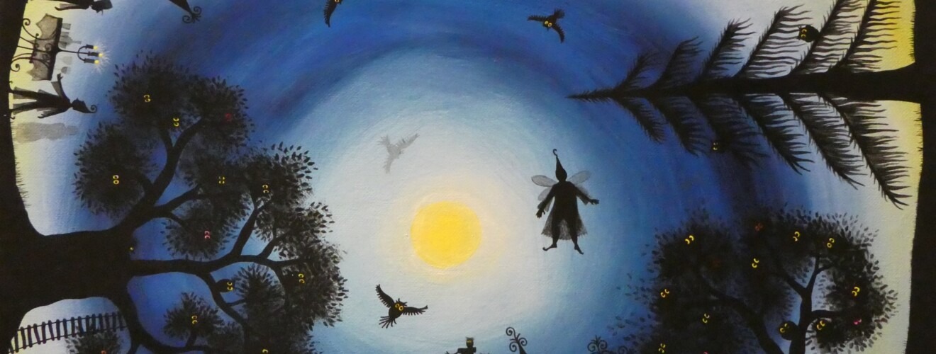 Dans l’univers d’Adeline M, chaque toile devient une poésie visuelle offrant des crépuscules colorés. Ses paysages nocturnes invitent à voyager dans des contes féériques. Adeline M crée des oeuvres sombres et gaies avec une pointe d’humour. Ses peintures révèlent son goût pour l’imaginaire et les histoires fantastiques. Bienvenue dans son univers artistique , où l’arrivée de la nuit devient la toile parfaite pour imaginer des histoires.