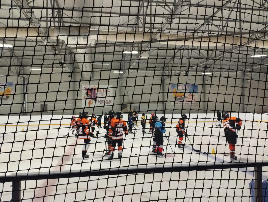 - L’EQUIPEMENT : Les enfants se font tres peu mal car ils sont protégés par leur équipement. Des patins à glace, une crosse