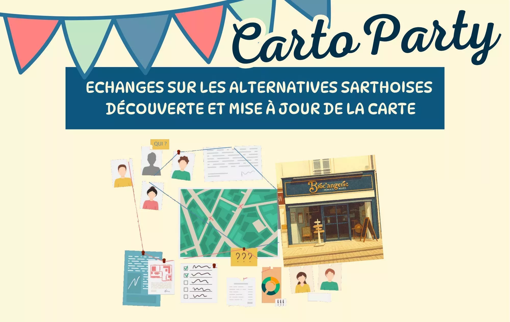 Le collectif Transi’Sarthe organise une Carto Party ! Un événement joyeux pour cartographier les alternatives sarthoise, rdv ce 30 août 2025 à la Broc’angerie.