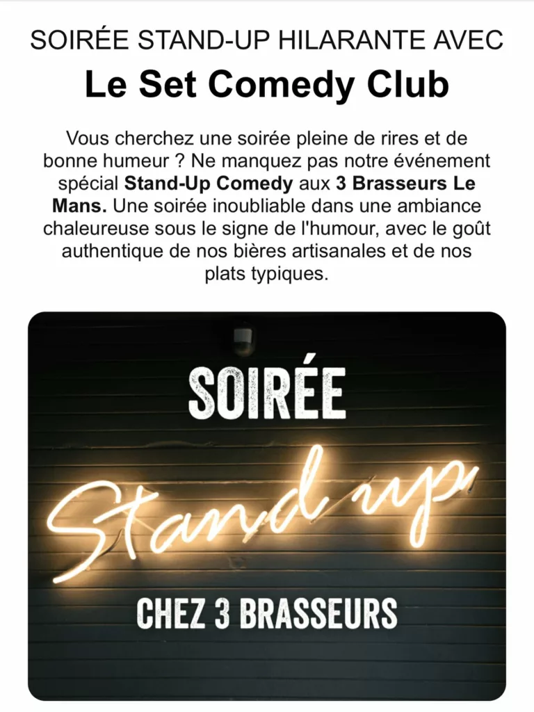 Les humoristes du 3B Comedy reviennent !!!! Le 8 octobre 2025 à 19h, Brasserie Les 3 Brasseurs ! Réservations : 02 43 24 26 17