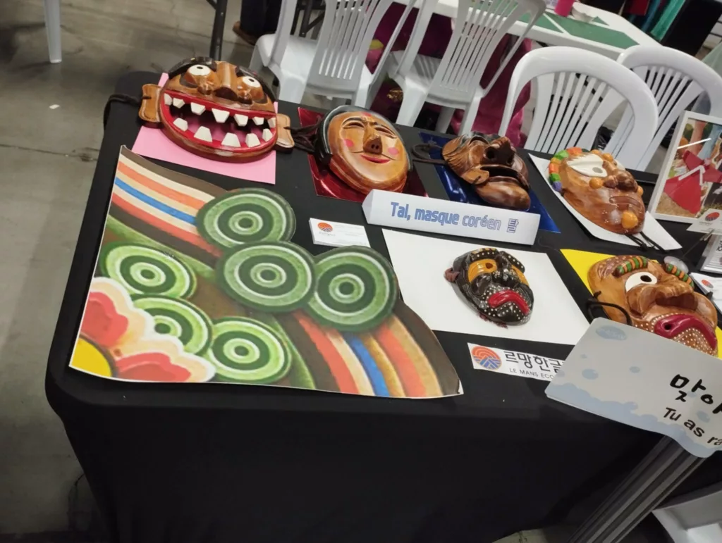 Ensuite, j’ai participé à un Atelier d’écriture coréenne, calligraphie avec l’Ecole coréenne du Mans ! j’ai vraiment beaucoup aimé, j’ai écrit mon prénom en coréen. on entendais les tambours…
