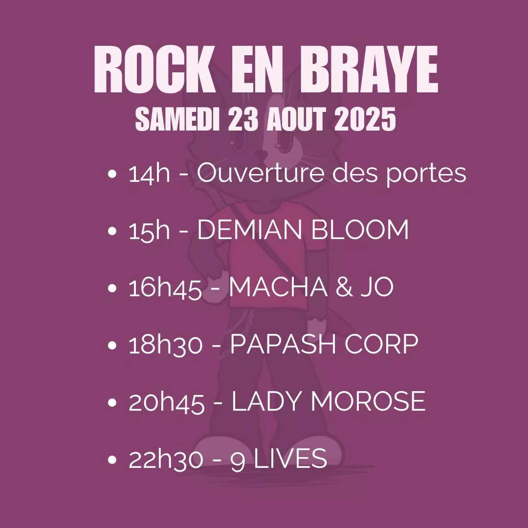 Le Festival Rock En Braye qui se déroulera les 23 et 24 août 2025 à L’égruau, 72310 Loir en Vallée. Vous y retrouverez Boby Geek, Lady Morose … et beaucoup d’autres… avec plein d’animations