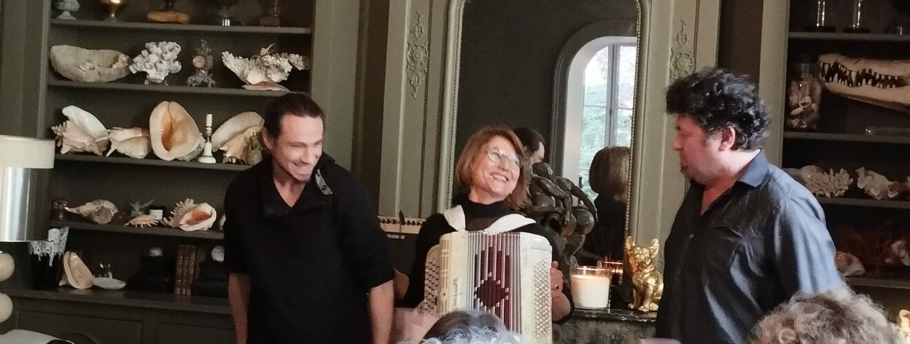 Cela fait 15 ans qu’Isabelle fait de l’accordéon, une artiste complète : elle joue aussi du piano, fait du théâtre, fait des peintures.