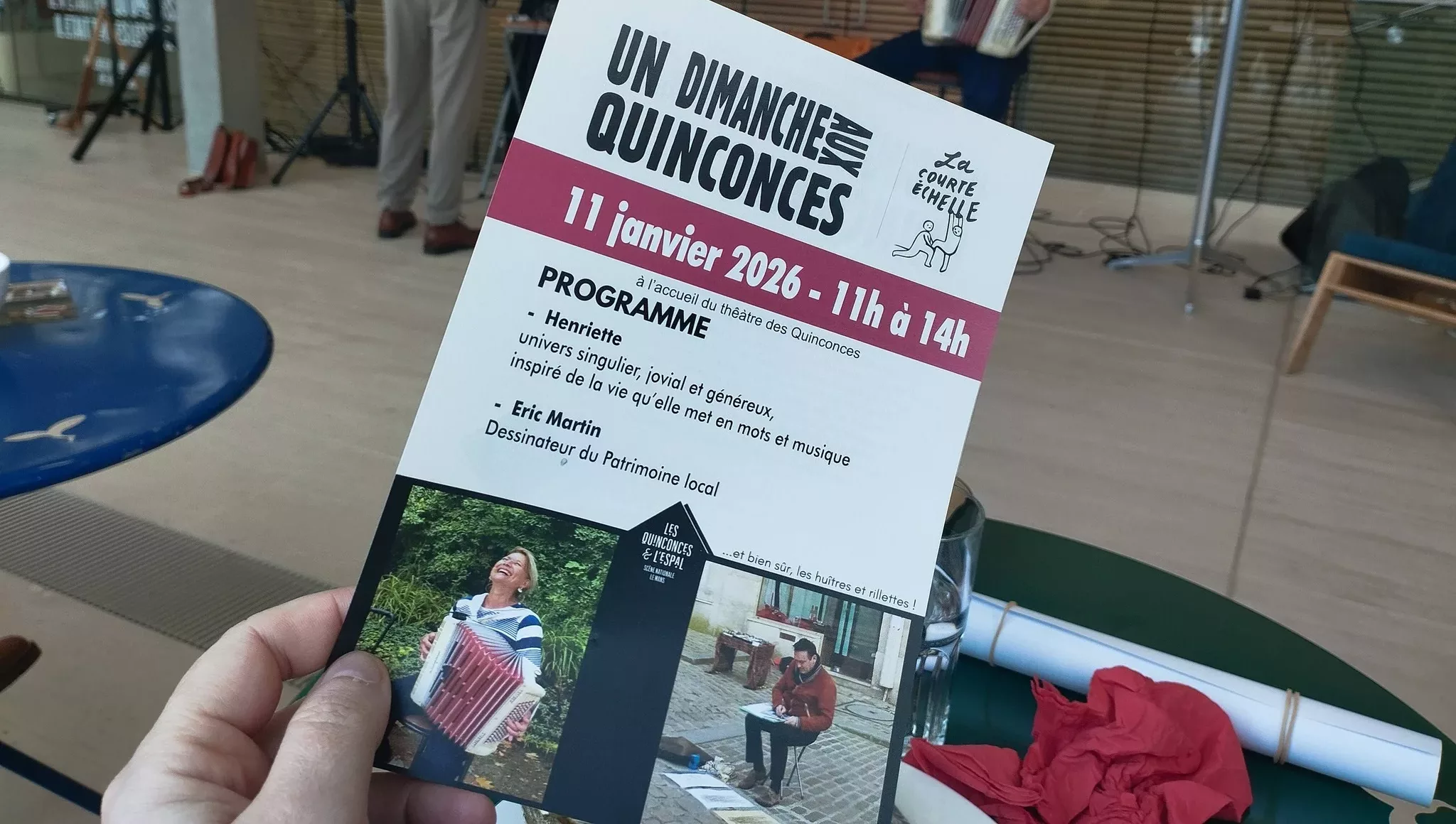 Ce dimanhe 11 janvier, l’Association la Courte Echelle a invité Henriette (sans les garçons) ou si un seul garçon : Romain Dutemple à la guitare. Il y avait aussi Eric Martin, dessinateur en Expo/vente.