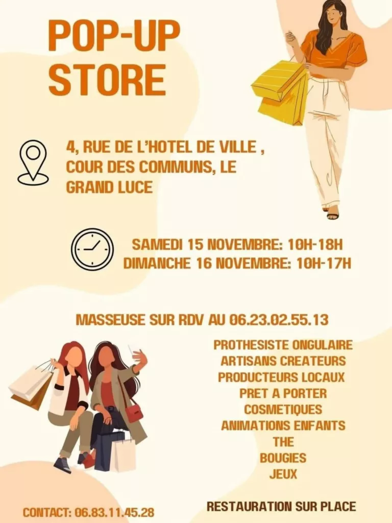 - Samedi 15 novembre 10h-18h à POP UP STORE 4, rue de l ‘hôtel de ville – Cour des communs -72150 Le Grand-Lucé