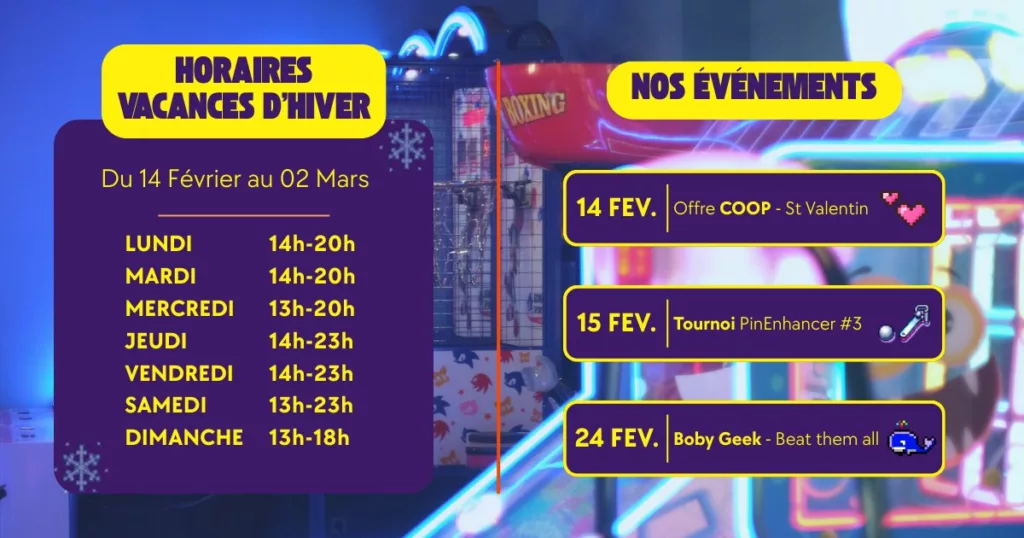 - Samedi 24 février 2026 14h à 20h : Journée retro gaming avec Boby Geek, venez découvrir ou redécouvrir des jeux rétro légendaires autour de la thématique Beat Them All ! Lien pour réserver