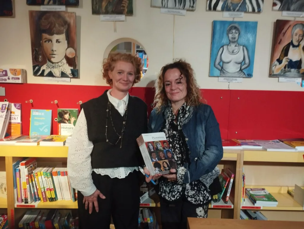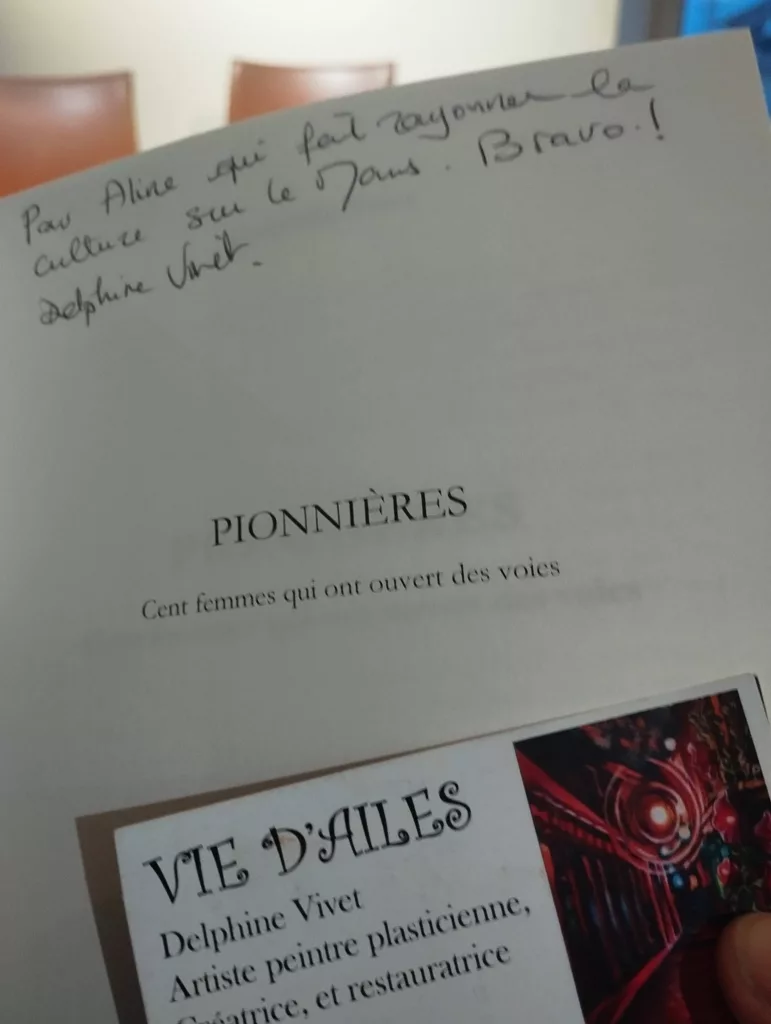 Ce samedi 7 février 2026, j’étais présente lors du vernissage de l’exposition « Pionnières » de Vie d’ailes / Delphine Vivet à la librairie Thuard au Mans.