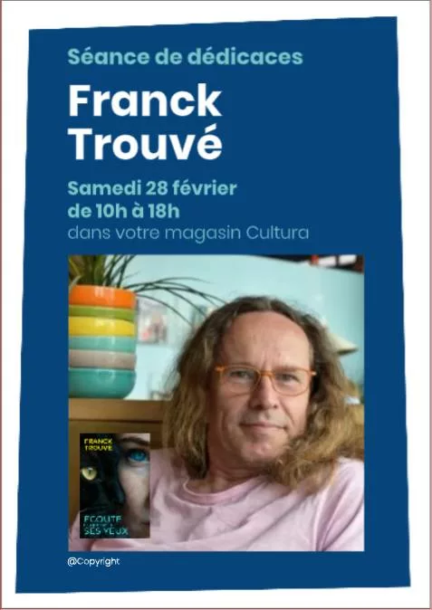 Ce 28 février… l‘auteur sarthois Franck trouvé était en dédicaces à Cultura le Mans pour présenter son nouveau roman « Ecoute ce que disent ses yeux ».