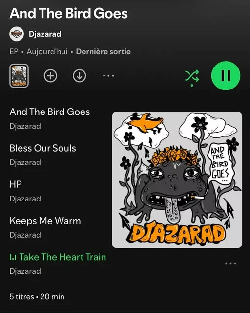 Le groupe manceau Djazarad (soul, Punk / funk) a sorti leur EP ‘And the Bird Goes’ ce 7 novembre 2025 ! Vous y retrouverez leurs trois singles déjà sortis ainsi que leurs titres ‘Hp’ et ‘take the heart train’.