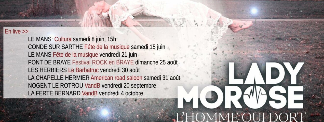 Le groupe Lady Morose sort leur nouvel EP « L’homme qui dort ». Ils ont plein de dates qui arrivent, vous pourrez assister à leurs concerts et vous propocurez ce précieux !!! Je les ai revus en concert à la Fête de Cultura ce 8 juin 2024. Je vous partage des photos.