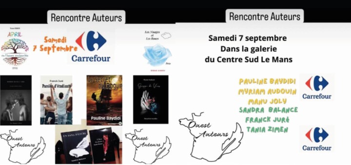 Samedi 7 septembre de 10h à 17h, dans la galerie commercial de Carrefour Sud Le Mans Dédicaces Collectif Ouest Auteurs !