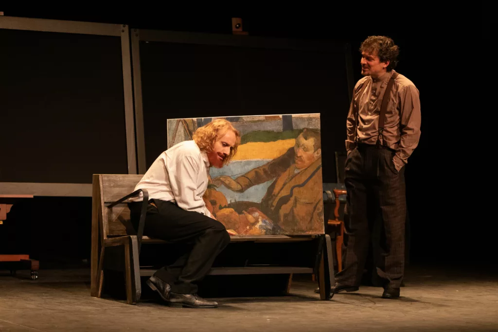 C’est l’histoire d’une cohabitation entre deux génies, qui ne s’est pas très bien terminée. L’événement final, l’oreille coupée de Van Gogh, tout le monde le connait. Mais comment en est-il arrivé à ce niveau de désespoir, à ce geste insensé ? Quelques semaines plus tôt, Gauguin rejoint Vincent à Arles. Ce dernier y vit depuis quelques mois, avec une certaine sérénité. L’idée ? Fonder là, en Provence, une maison d’artiste. La pièce retrace ces neuf semaines incandescentes. En condensé, bien sûr, mais dans un vrai souci de fidélité aux nombreux éléments connus, car écrite sous la vigilance experte de David Haziot.