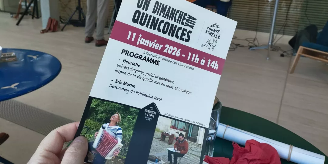 Ce dimanhe 11 janvier, l’Association la Courte Echelle a invité Henriette (sans les garçons) ou si un seul garçon : Romain Dutemple à la guitare. Il y avait aussi Eric Martin, dessinateur en Expo/vente.